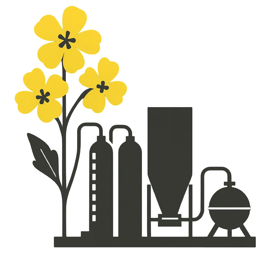 Rapsblommor skördas och pressas för att utvinna rapsolja, grunden till vårt miljövänliga material.